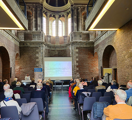 Der Vorsitzende Dr. Norbert Schloßmacher begrüßte die angereisten Vereinsmitglieder und zahlreiche Gäste in der Schlosskapelle der Zitadelle Jülich und bedankte sich herzlich bei Guido von Büren vom Museum Zitadelle Jülich und beim Jülicher Geschichtsverein für die hervorragende Vorbereitung der Herbsttagung. Dr. Ulrich Helbach informierte, dass es seit dem Frühjahr keine wesentlichen Veränderungen hinsichtlich Finanzen und Mitglieder gegeben habe. Frau Kathrin Ziegelmayer-Thull wurde als neue Geschäftsführerin vorgestellt.